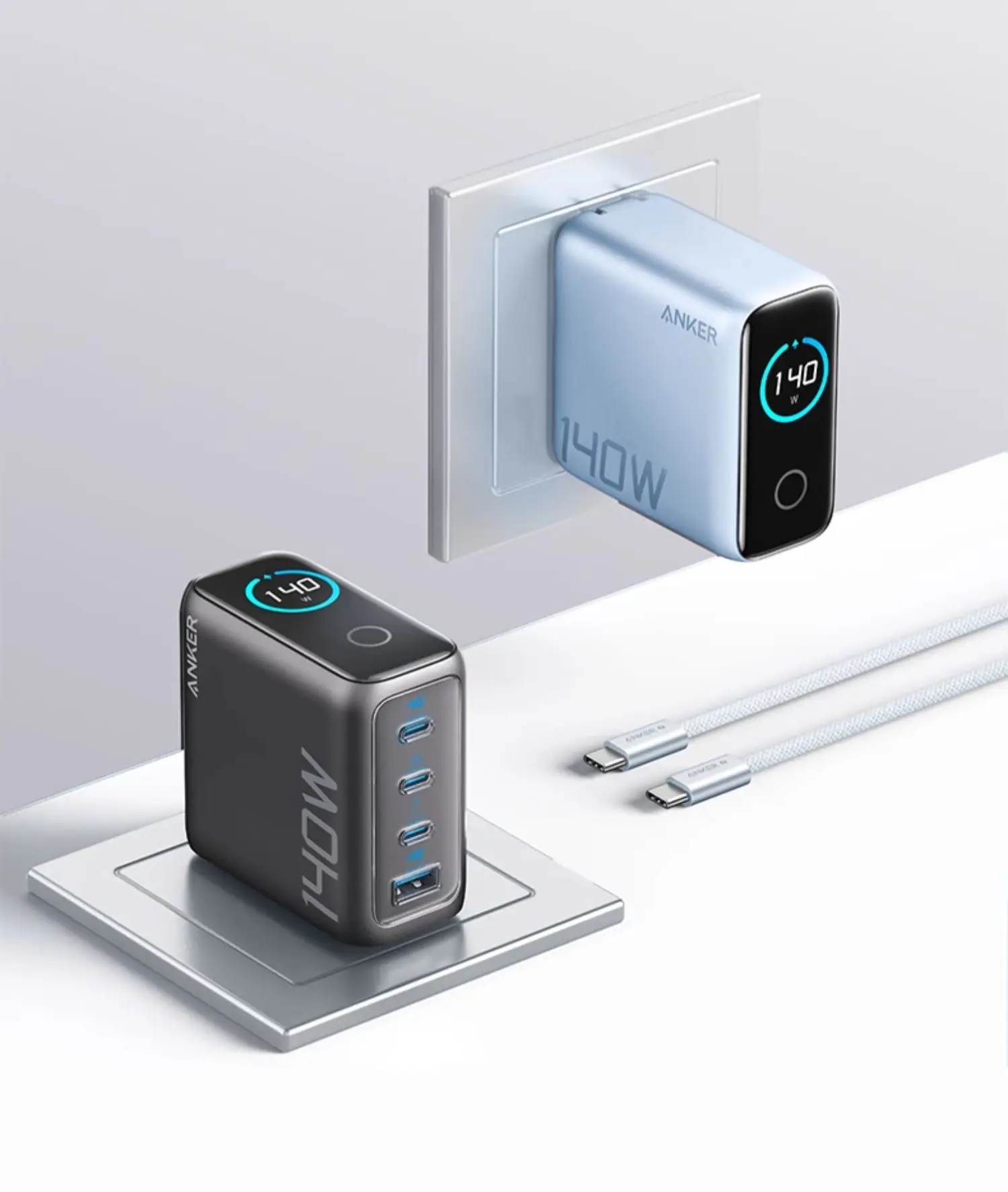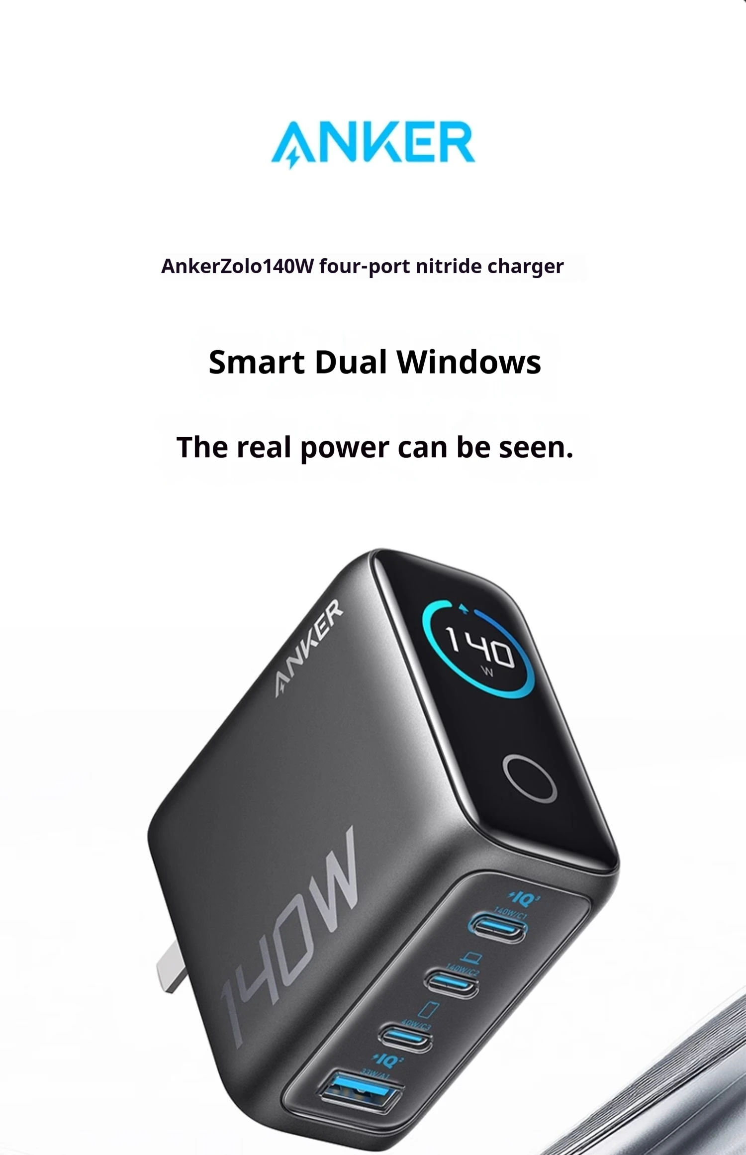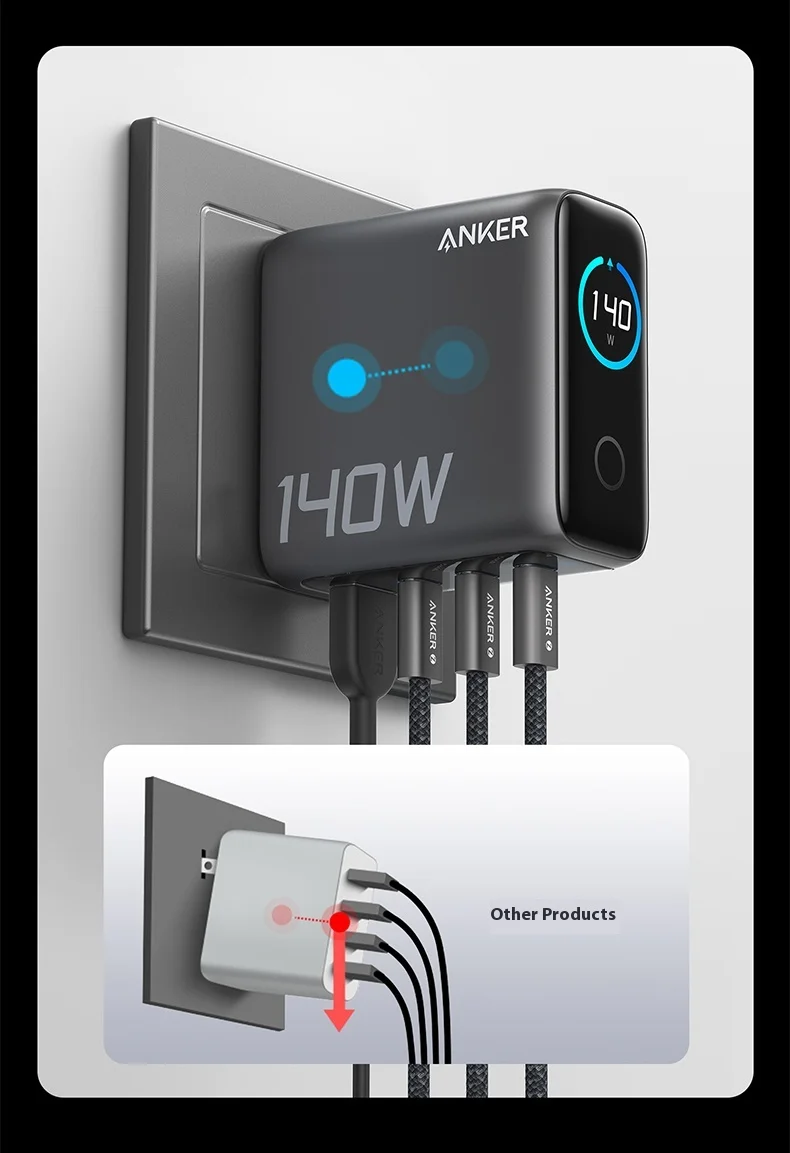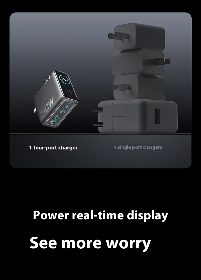 Anker Zolo 140W GaN Charger AI Display Screen Four-Port Fast Charge Mobile Phone Chargers Portable Phone Power Adaptor Original