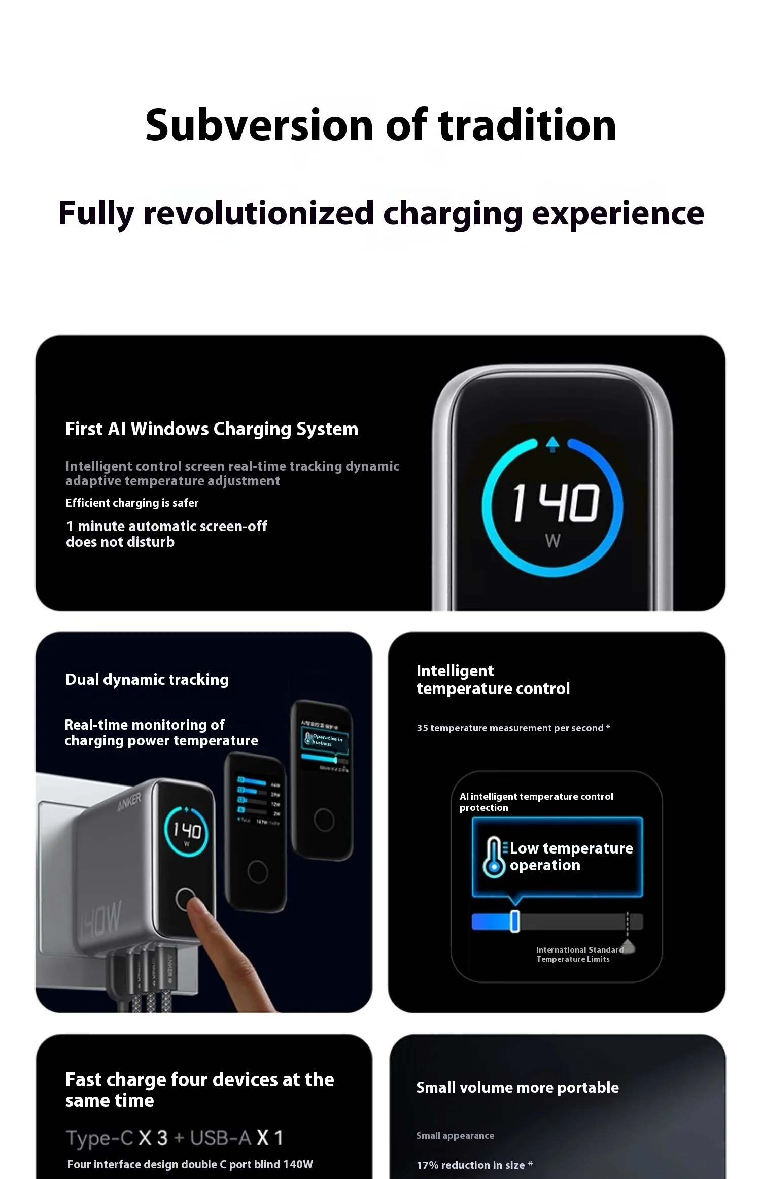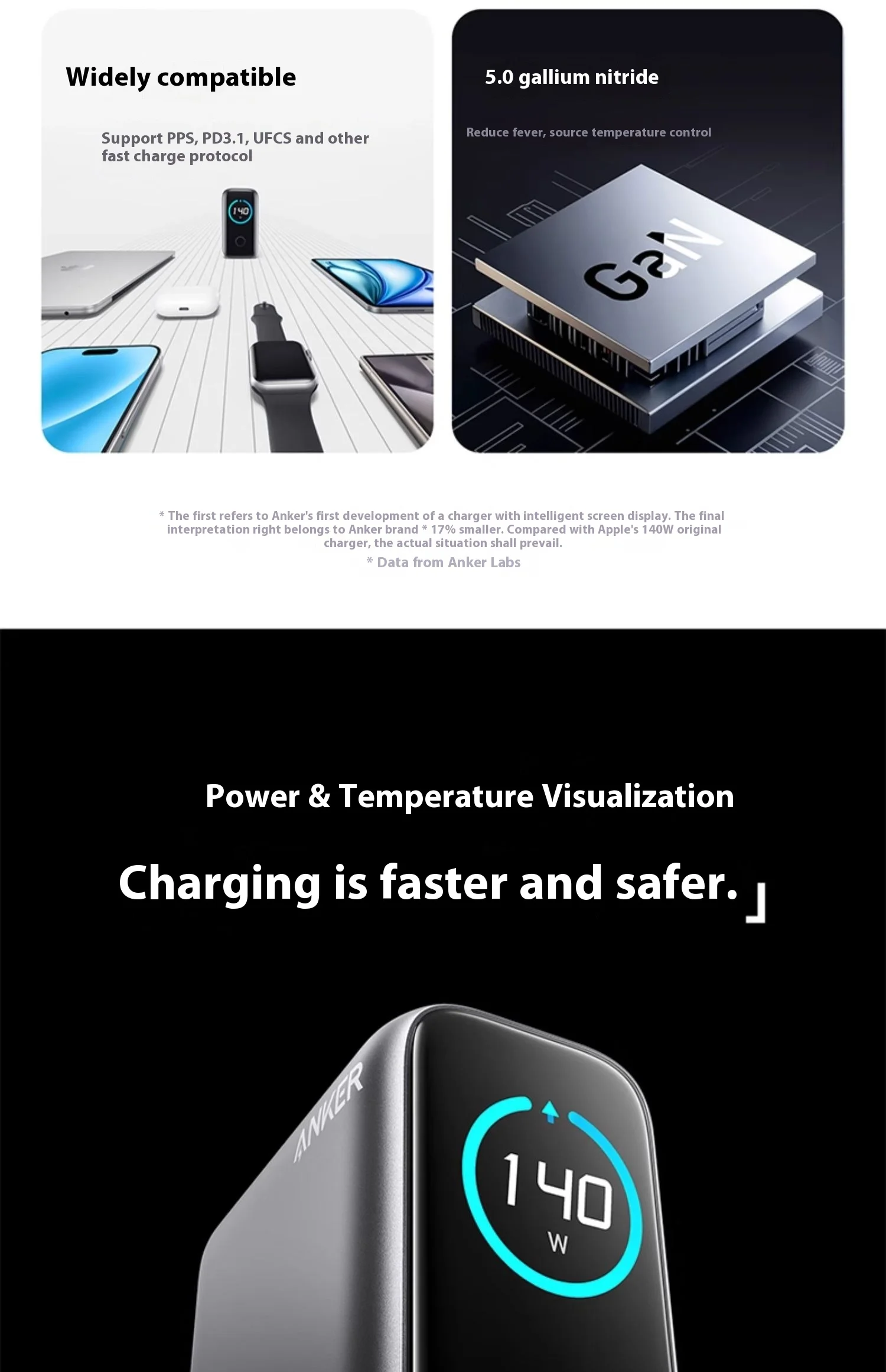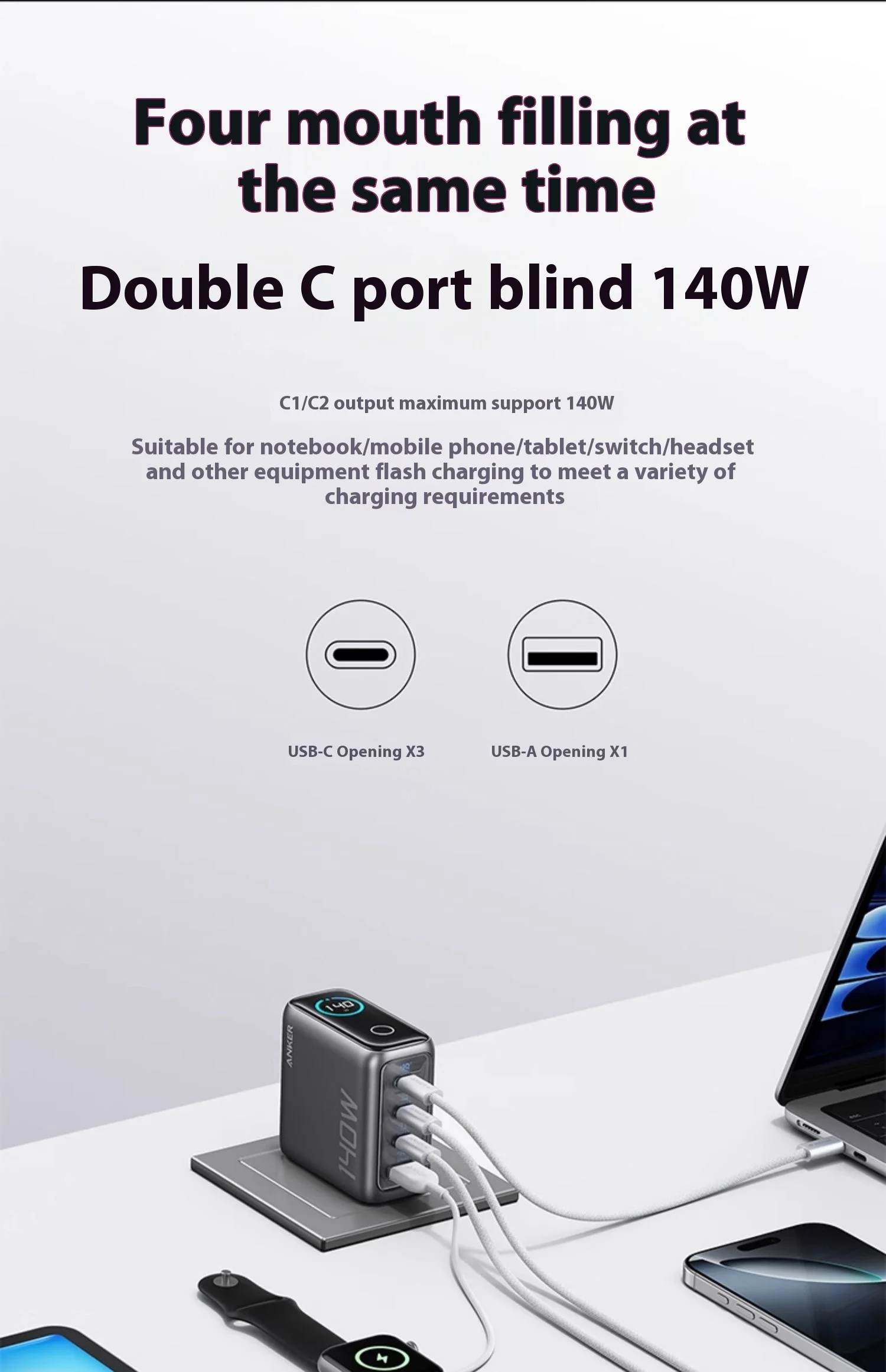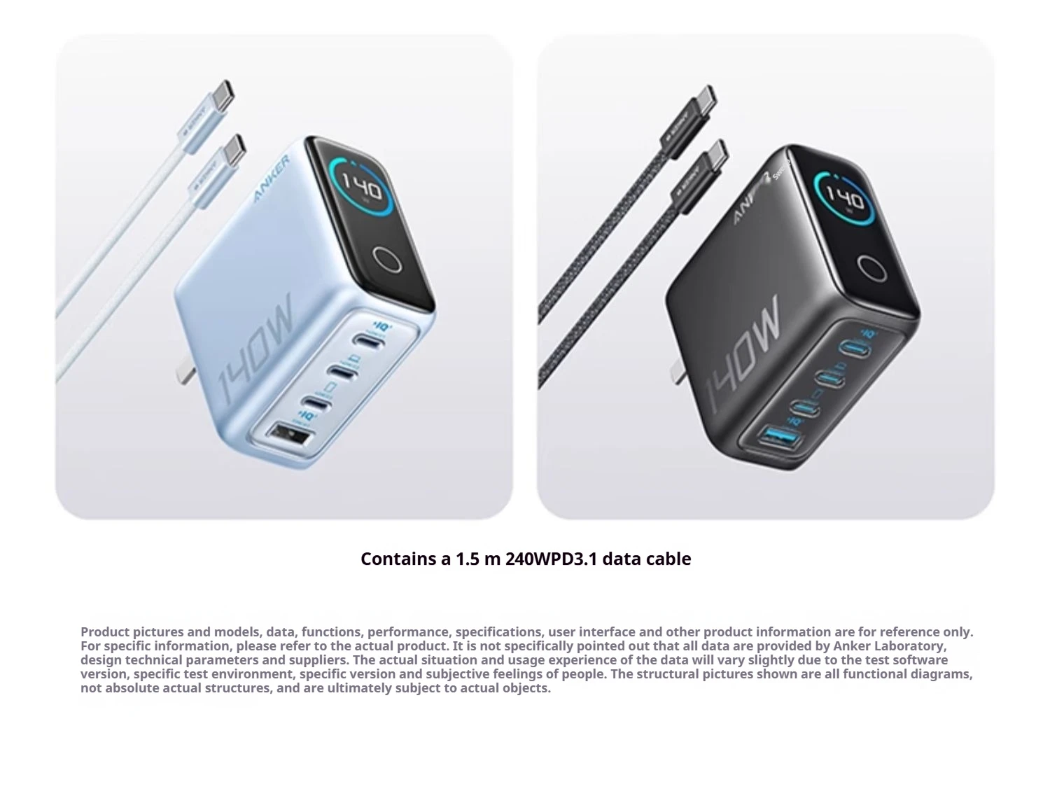 Anker Zolo 140W GaN Charger AI Display Screen Four-Port Fast Charge Mobile Phone Chargers Portable Phone Power Adaptor Original